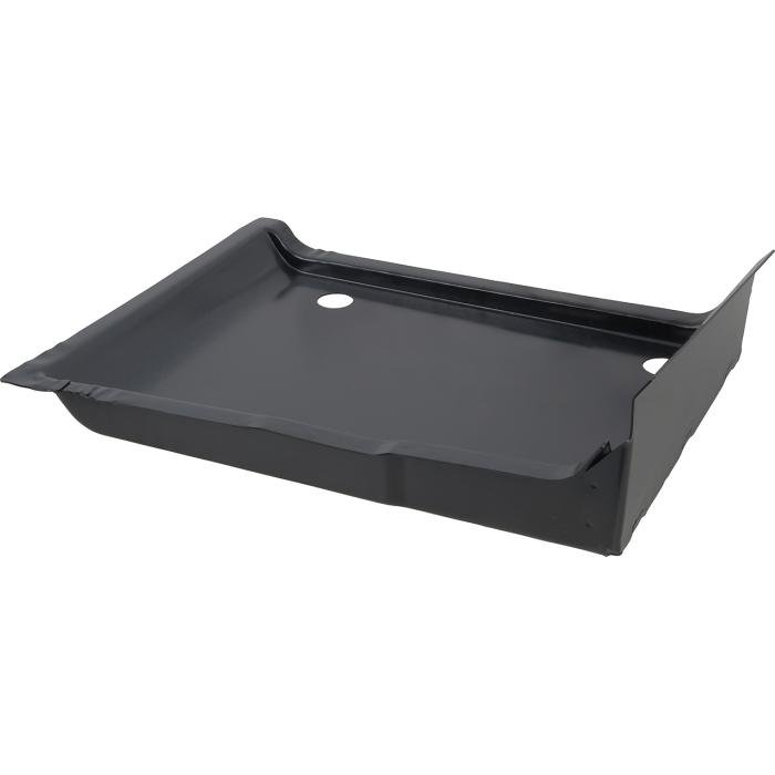 Reproduction of the original front bucket seat reinforcement pan for use with 1964-68 Mustang models. Each seat panel is manufactured in stamped steel to original factory specifications featuring correct contours for an authentic appearance and fit. Attaches under the floor pan below the bucket seat for convertible models. Manufactured using 14 gauge cold rolled steel. The seat access holes are pre-punched. Installs on the RH passenger side.