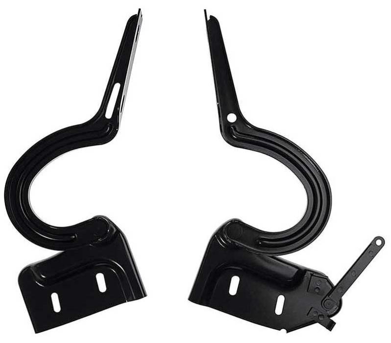 Reproduction of the original trunk lid hinge set designed for use with 1965-66 Mustang Fastback models. Each hinge is manufactured in heavy duty stamped steel replicating the original in quality, design, appearance and fitment. Replace your worn out hinges with these accurate reproductions for proper trunk lid alignment. Sold in pairs.