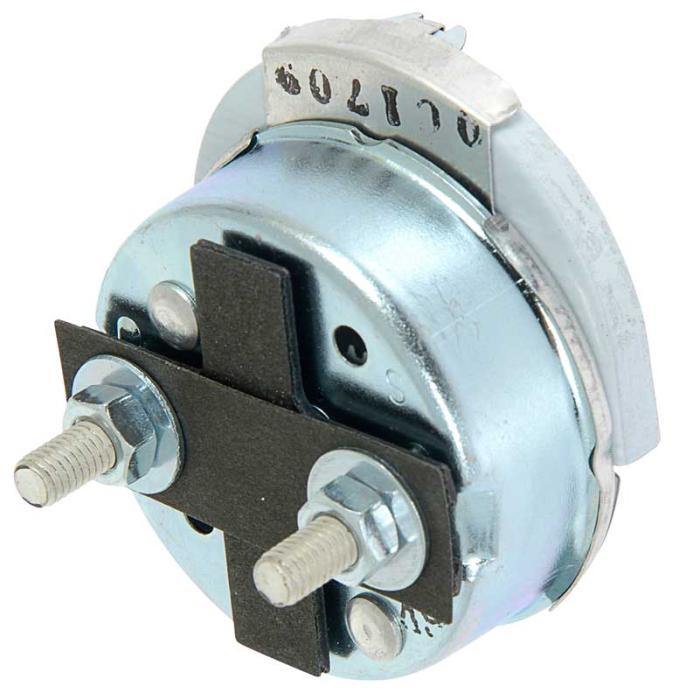 Reproduction oil pressure gauge for 1965 Mustang GT and all 1966 Mustang models with 5-gauge instrumention and the round style speedometer. Manufactured to factory specifications for proper function and appearance.