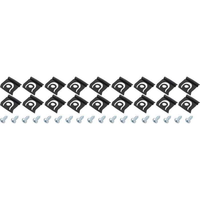 When replacing the windshield moldings it's a good idea to replace the clips. This is a reproduction set of the original clips and screws used to attach the front windshield moldings on 1965 Convertible models.