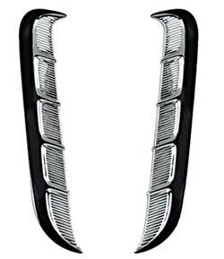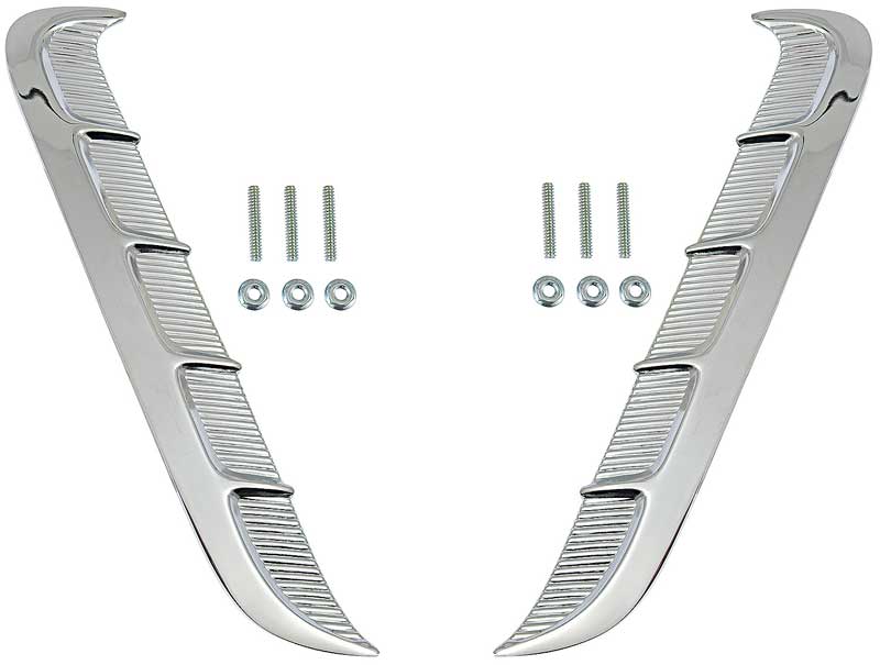 Die-cast chrome plated metal. Simulated side scoops are one of the visual moldings that define a 1964-65 Mustang. These are located on the front of the quarter panels on your Mustang. Removal of the interior quarter trim may be necessary to access and install. Replaces Ford OE part # C5ZZ-65290A76 and C5ZZ-65290A77. Includes mounting hardware. Sold in pairs.