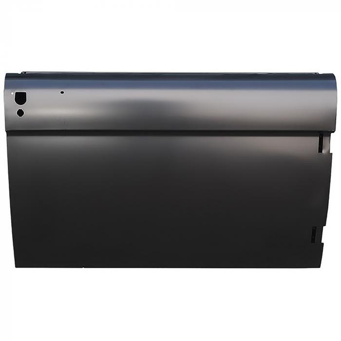 Brand new, all steel, reproduction door shell for 1966-67 Bronco models with locking doors. This is a full replacement door shell, stamped and assembled to meet or exceed factory specitfications fit and appearance. Shells are EDP coated inside and out to prevent corrosion. This door shell features a provision hole for the outer lock cylinder in the factory location beneath the external door handle holes.