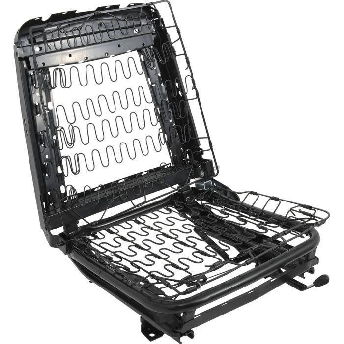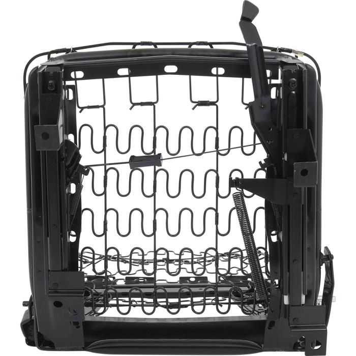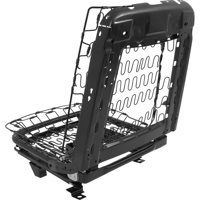 Reproduction seat frame assembly for 1966-77 Ford Bronco models. Each seat assembly is manufactured in quality stamped steel to original factory specifications that replicates the original in design, appearance, and fitment. This all-steel seat frame comes fully assembled and ready to add seat foam and upholstery. Includes are the seat back, seat bottom, seat spring assemblies, seat frame, and seat track. Fits LH, driver side.