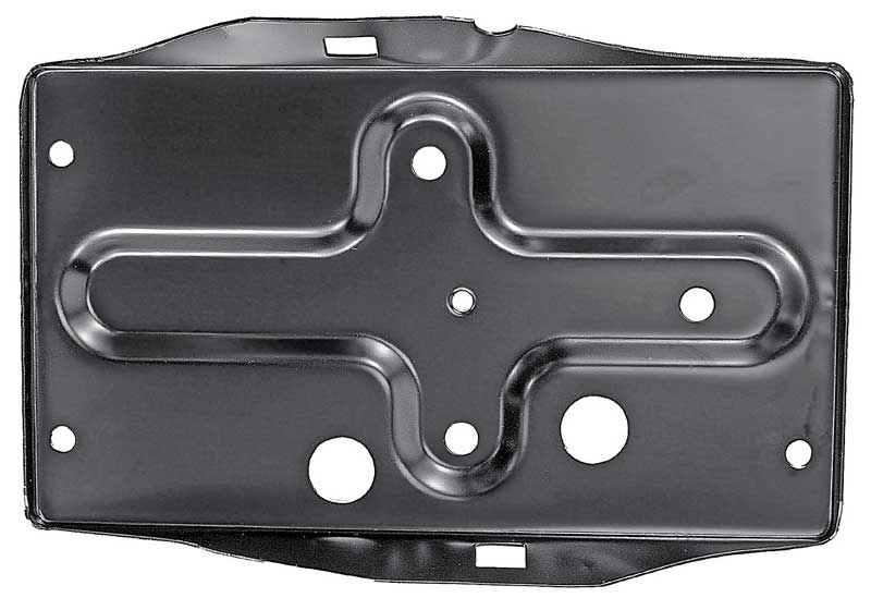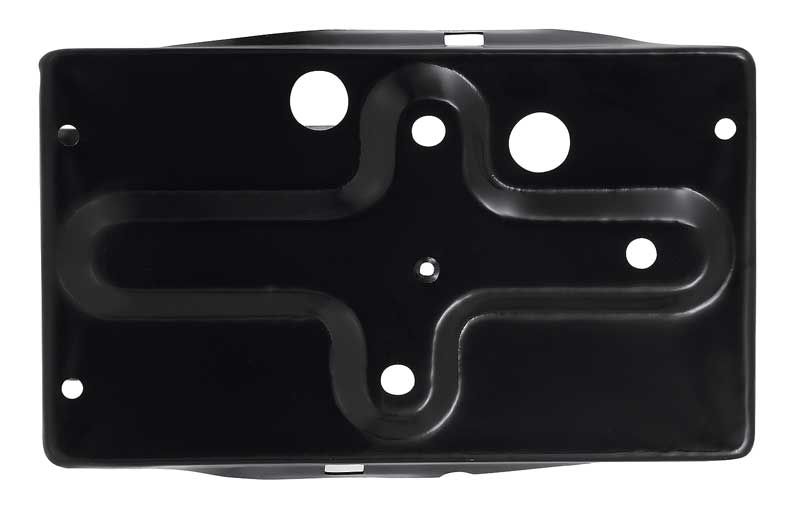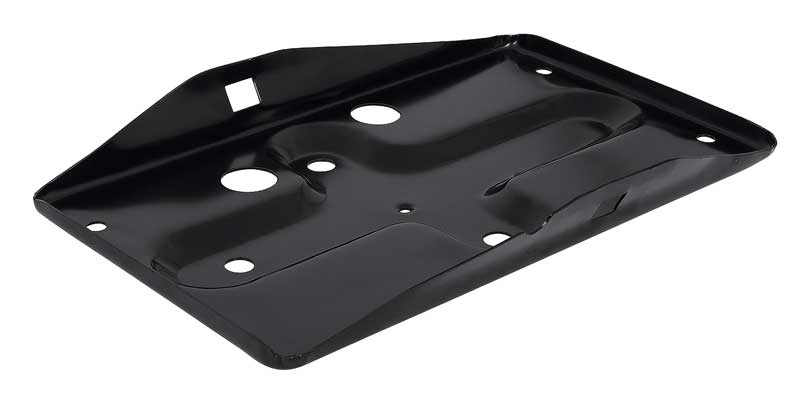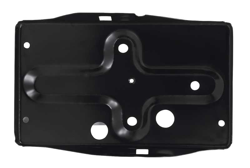 Reproduction of the original battery tray for use with 1966-77 Ford Bronco models. Each battery tray is manufactured in high-grade stamped steel featuring correct pre-drilled mounting holes matching the factory tray. It is a direct bolt-in replacement for the original. Also very useful for adding a second battery to any Bronco. Comes with a black EDP coating for rust and corrosion prevention.