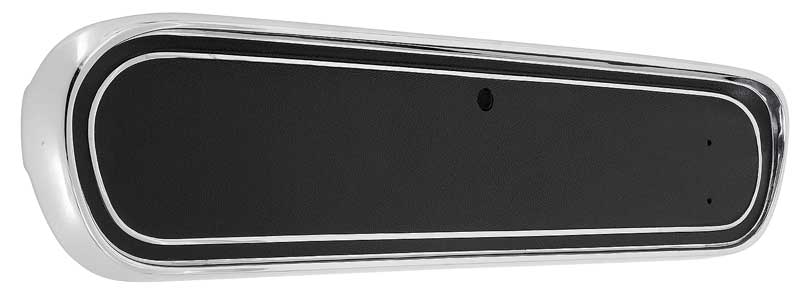 Reproduction of the original glove box door designed for use with 1966 Mustangs with standard interiors. This reproduction glove box door is perfect for restoration or repair. Made from pressure die-cast zinc with the correct chrome trim and camera-case black finish. The Tri-bar Running Horse emblem available separately.