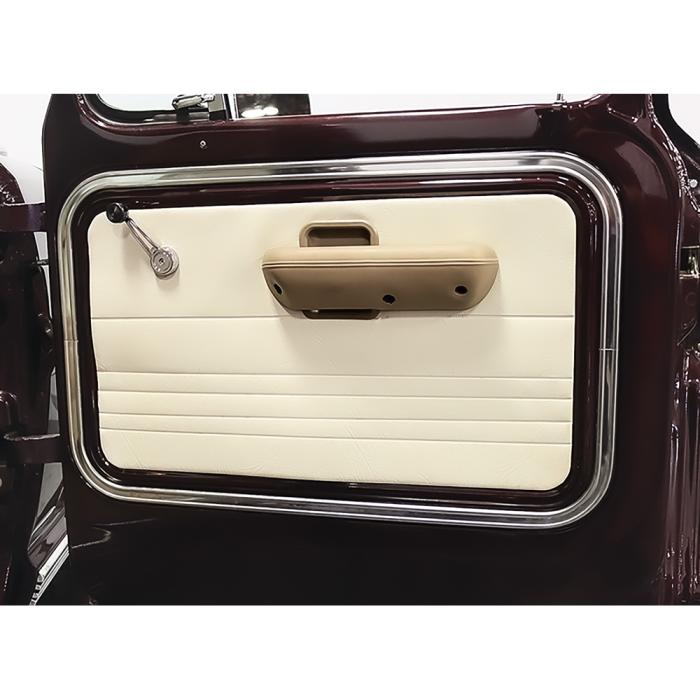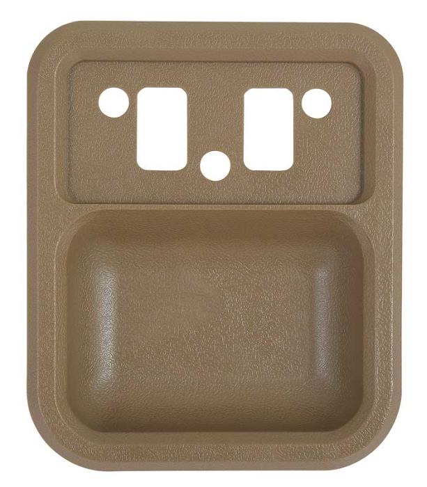 Reproduction door panel arm rest cup for 1968-69 Falcon, Fairlane, Galaxie, 1967-72 Ford F150, F250, F350 pickup truck, 1969-72 Econoline, and 1968-77 Bronco models. Each door handle / door finger cup is manufactured in quality injection molded ABS replicating the original in design, appearance, and fitment. Will replace the old, damaged, or cracked original exactly. Sold individually.
