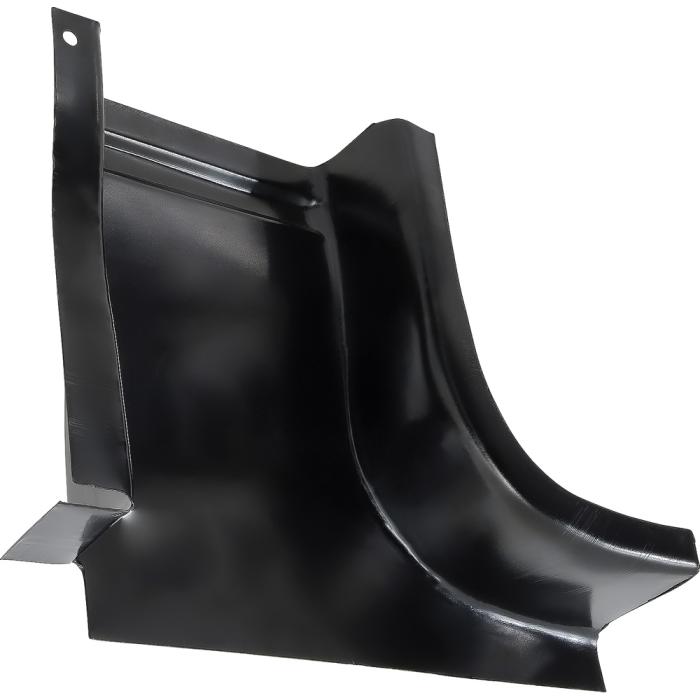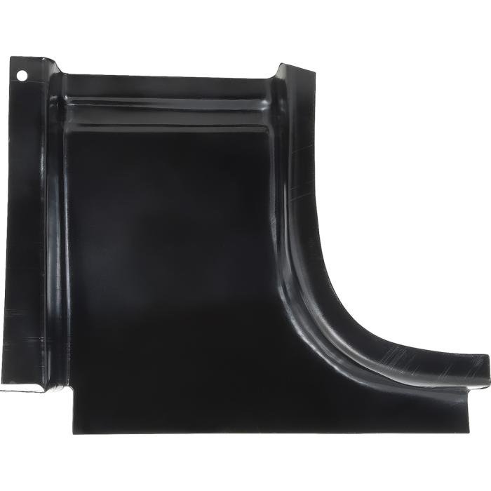 Replacement lower right door hinge pillar repair panel for 1973-79 Ford F-100, F-150, and F-350 pickup trucks. This panel extends from the bottom lower hinge bolt to the rocker. It is construction from 14 gauge steel and has the threaded nut preinstalled for the lower hinge bolt. Replaces OE # D3TZ-02042-R.