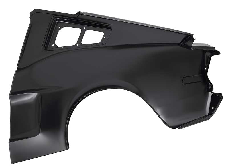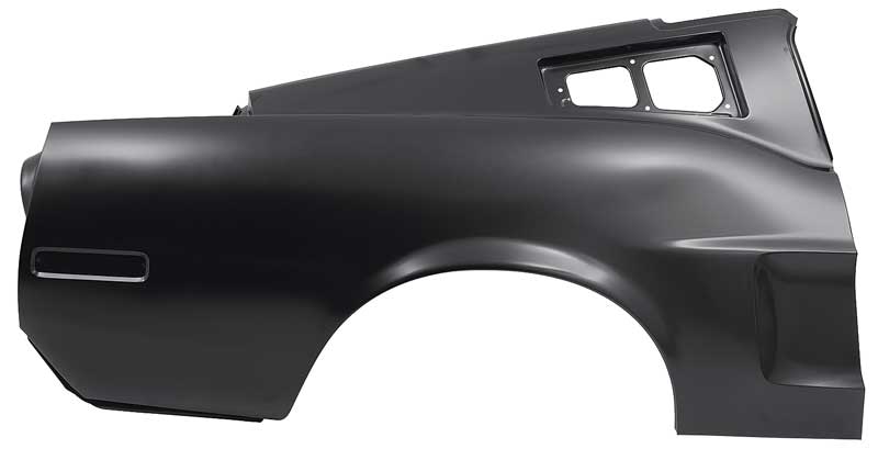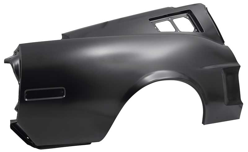 Reproduction of the original complete quarter panel designed for use with 1968 Mustang Fastback models (early 1968 models). Each quarter panel is manufactured in stamped steel to original factory specifications featuring correct contours for an authentic appearance and fit. Each Not just a skin, a complete reproduction of the original quarter panel that includes every component found on the original quarter panel. This is a one piece design unlike other reproductions where the sail panel area is not attached. Comes with a black EDP coating for rust and corrosion prevention. Note: For the early style quarter panel with surface mount side marker, see 27840QR.