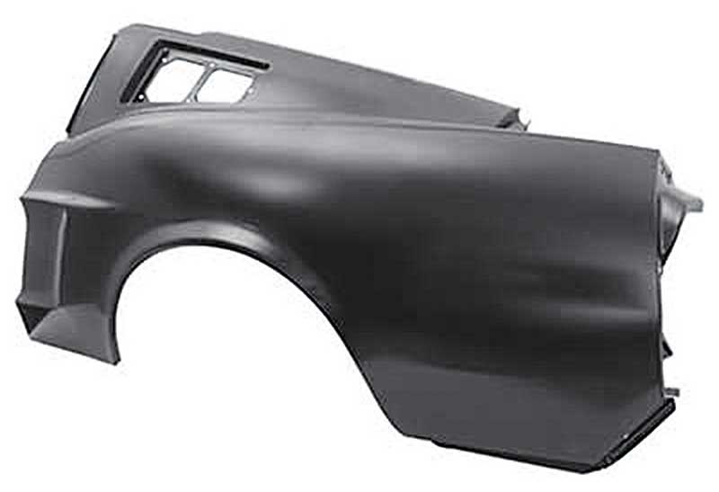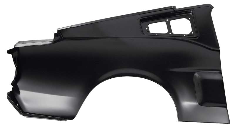 Reproduction of the original complete quarter panel designed for use with 1968 Mustang Fastback models (later 1968 models). Each quarter panel is manufactured in stamped steel to original factory specifications featuring correct contours for an authentic appearance and fit. Each Not just a skin, a complete reproduction of the original quarter panel that includes every component found on the original quarter panel. This is a one piece design unlike other reproductions where the sail panel area is not attached. Comes with a black EDP coating for rust and corrosion prevention. Note: For the early style quarter panel with stamped indent side marker, refer to part number 27840MA.