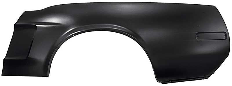 Reproduction of the original style outer quarter panel skin designed for use with 1968 Mustang coupe and convertible models built before 2/15/1968. This reproduction style quarter panel skin replaces the outer sheetmetal from the door jamb back to the tail light panel. A small lip is provided to assist in welding. Similar to a full quarter panel except for the lack of tail light and trunk drip rail structures. Unique to early 1968 models, this quarter panel skin features the correctly stamped recess area for the side marker reflector (available separately). Note: This panel includes the rear side marker reflector indent. Mustangs produced before 2/15/1968 included the side marker indent from the factory. Comes with a black EDP coating for superior long-term corrosion and rust protection. For use on LH drivers side.