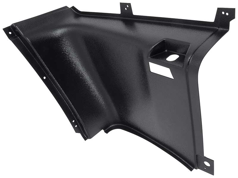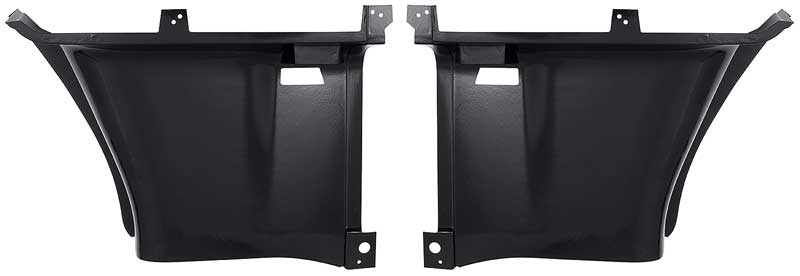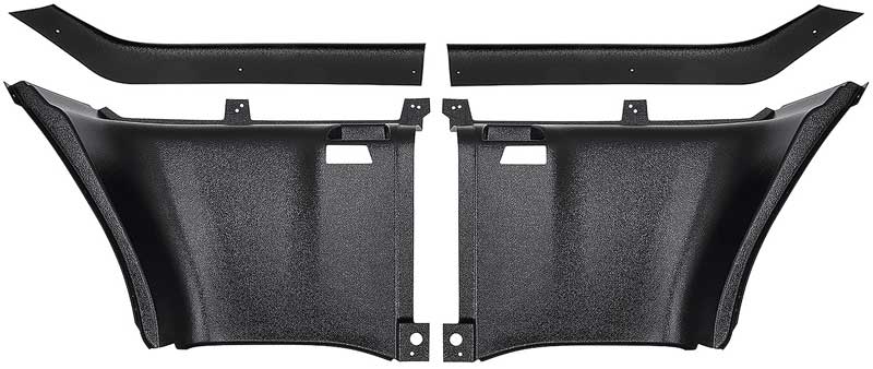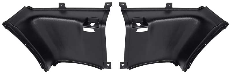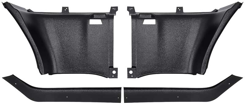 Reproduction rear quarter trim side panel set that attaches behind the inner quarter trim panels and includes the 2 upper trim pieces. This 4 piece set features OEM grain patterns molded into the panel as original, and fits 1969-70 Mustang Fastback models. These molded black plastic panels can be prepped and painted to match your desired original interior color using our Interior Paints, available separately.