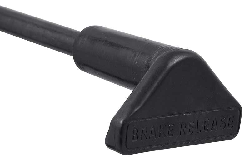 Complete parking brake assembly with foot operated arm and release mechanism. The parking brake assembly is mounted under the dash. Includes the foot pedal and a custom pedal pad as well as the hand release lever and handle.