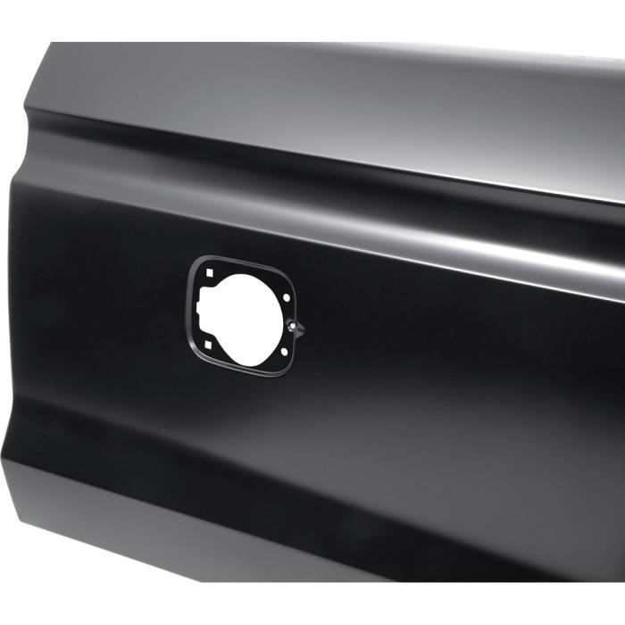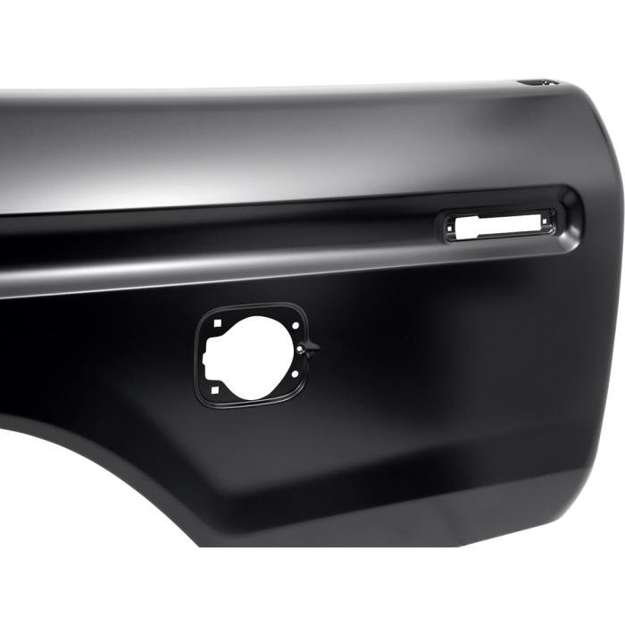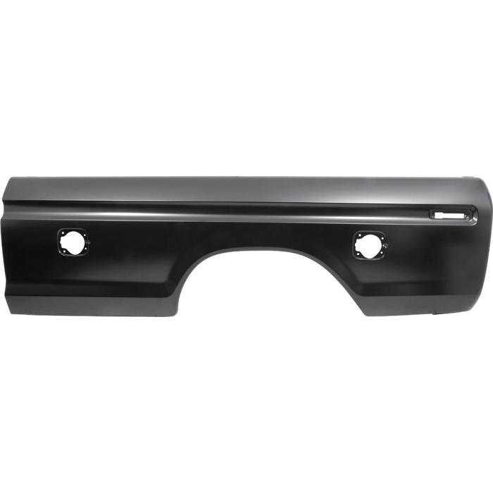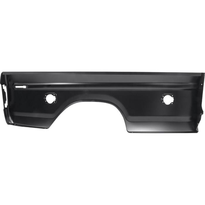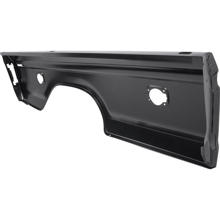 Reproduction driver-side outer bedside / bedskin for 1973-79 Ford F-Series StyleSide long-bed pickup trucks with dual fuel doors. This stamped 19 gauge steel bedside features the correct shape, size, length and holes to fit like original. Arrives EDP coated to help protect against rust and corrosion. Replaces OE # D7TZ-9927841-D