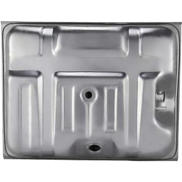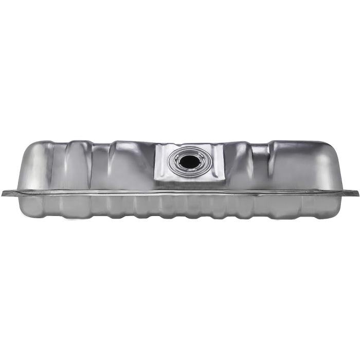 Reproduction rear / aft mount gas tank for 1973-79 Ford F-100, F-150, F-250, F-350 Pickup Trucks. This direct replacement steel tank installs in the stock location using the original hardware. Tank measures 34-3/4 in. x 27 in. x 8-1/8 in and holds 19 gallons of fuel. Features vent pipe toward front of truck. Straps not included, sold separately. Replaces OE # D5TZ-9002-B.
