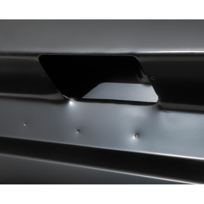 Reproduction tailgate for 1973-79 Ford F-Series pickup trucks. The main assembly is constructed from automotive-grade steel with durable EDM coating to prevent corrosion. It is often more cost-effective to replace a damaged tailgate altogether rather than spending the time and money restoring the original.