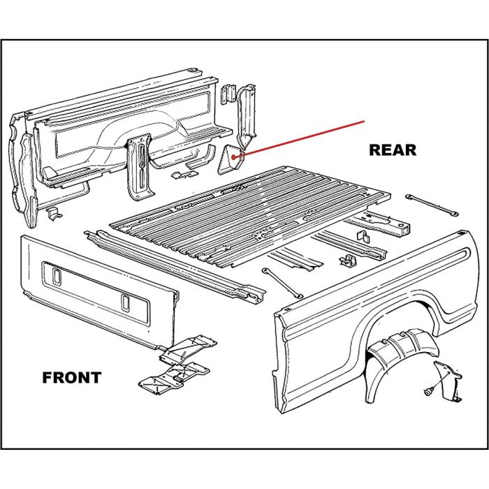 Reproduction tailgate post to bedside reinforcement panel for 1973-79 Ford F100, F150, F250, F350 models. This panel mounts low at tail end of the bedside panel to reinforce the tailgate post and quarter panel. Features pre-stamped holes and factory bends. Arrives EDP coated to help protect against rust and corrosion. Fits RH, passenger side.