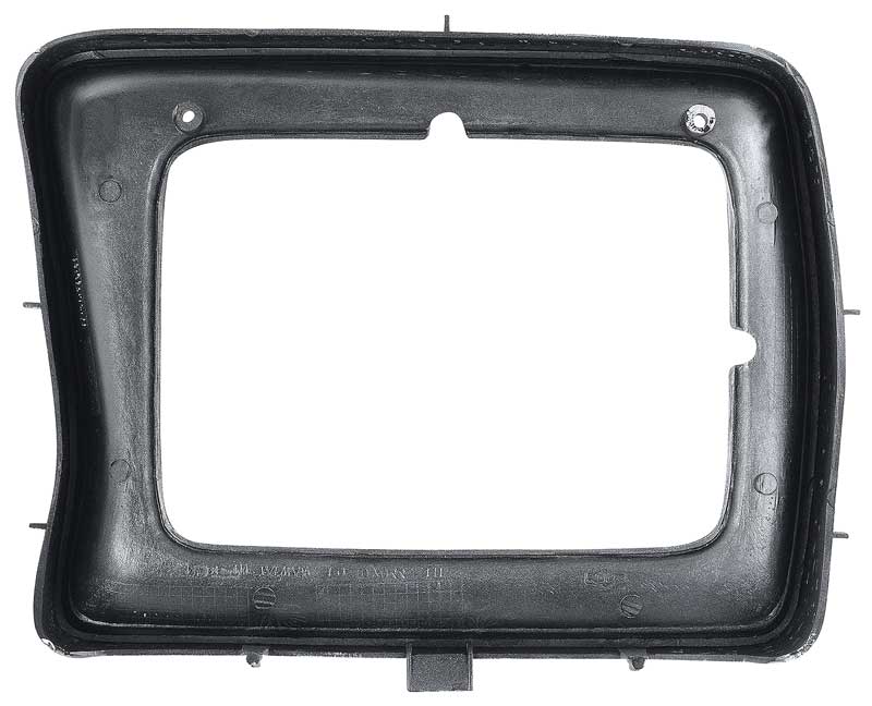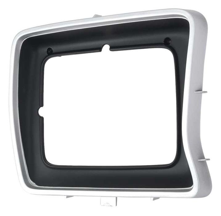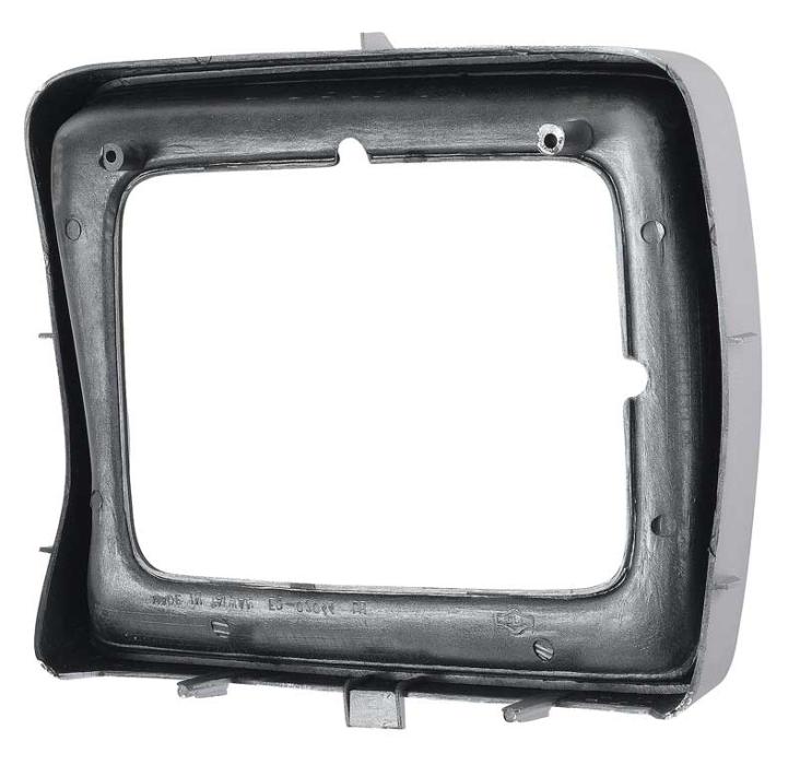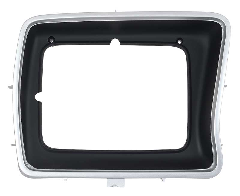 Reproduction passenger side head lamp door for 1978-79 Ford F100, F150, F250, and F350 pickup trucks and Broncos with rectangular headlights. This bezel, with the argent silver perimeter and dark inset paint is a correct replacement for 1978 Ranger trim vehicles and all 1979 models. Replaces Ford part# D8TZ-13064.