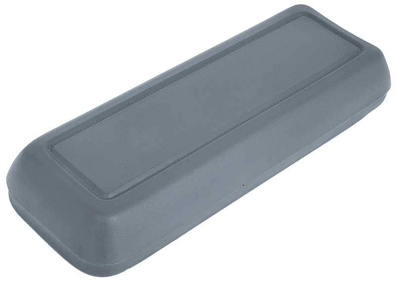 Reproduction of the original console lid arm rest pad for use with 1979-86 Mustang models. Manufactured to factory specifications from OEM quality injected molded soft urethane, featuring the correct grain textured pattern, and original mounting points.