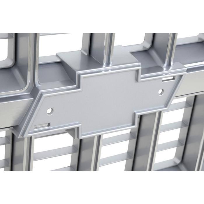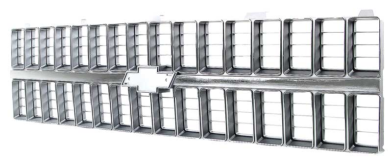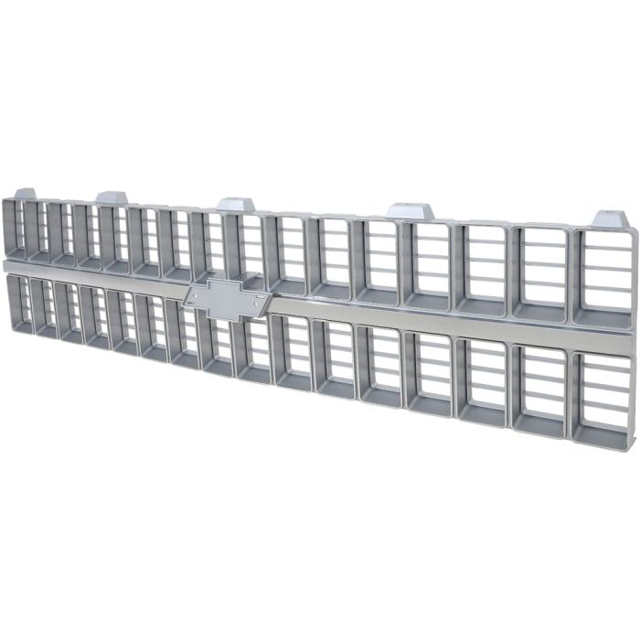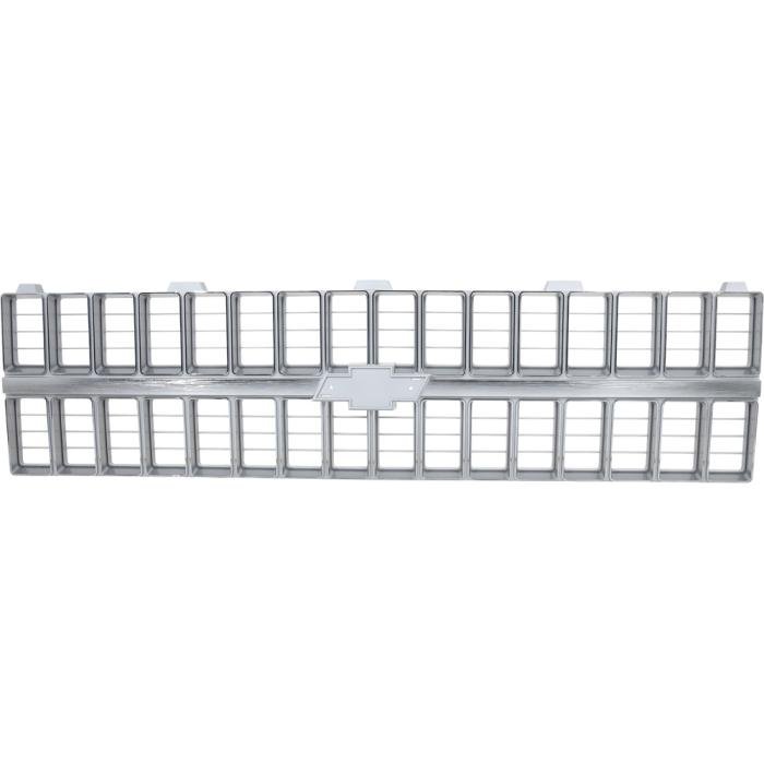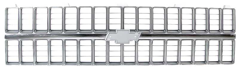 Reproduction of the original front grill designed for use with 1981-82 Chevrolet C/K Pickup, Blazer & Suburban models. Each grill is manufactured to original specifications with the correct center grill emblem pad allowing installation of the emblem (available separately), and will bolt-on in using factory mounting locations. This grill features the correct argent silver and chrome finish. Each injection molded grill features the correct shape, size, bends, tabs, holes and finish, like original. The die-cast emblem is sold separately under part # T78182. This grill replaces GM part # 14021348, 14021296, or Partslink # GM1200121.