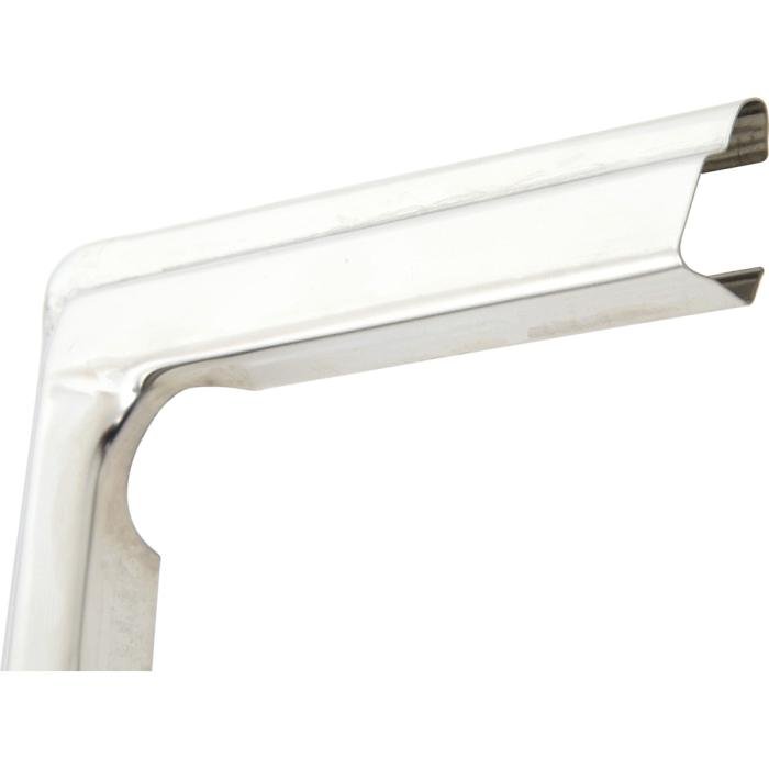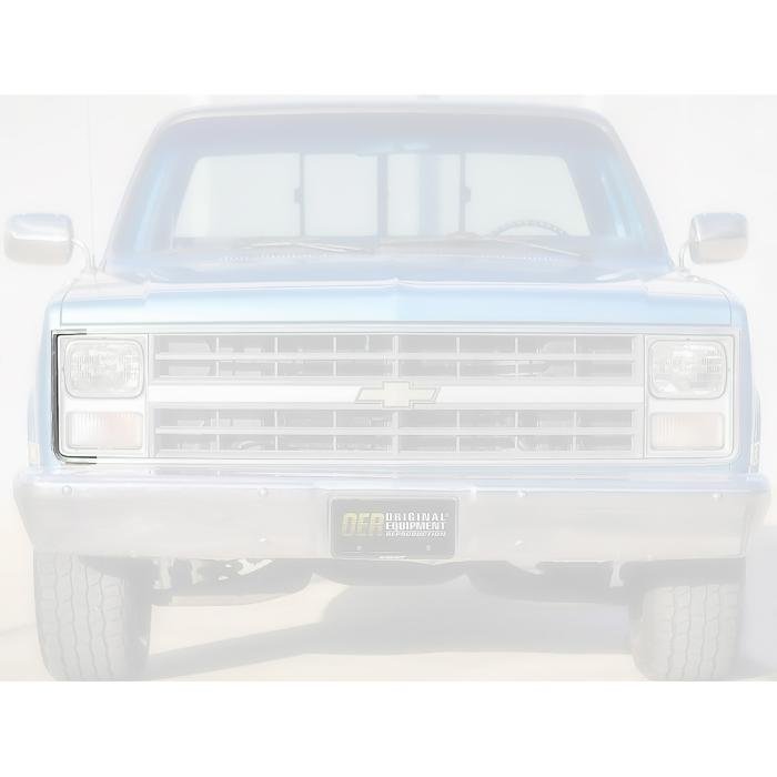 Reproduction grill side molding for 1983-86 Chevrolet and GMC Pickup Trucks and 1983-88 Blazer, Jimmy and Suburban models. This quality reproduction is manufactured in stamped stainless steel to OE factory specifications and is ready to install. For use on the passenger side portion of the grill assembly.