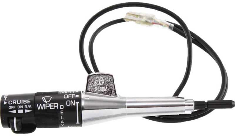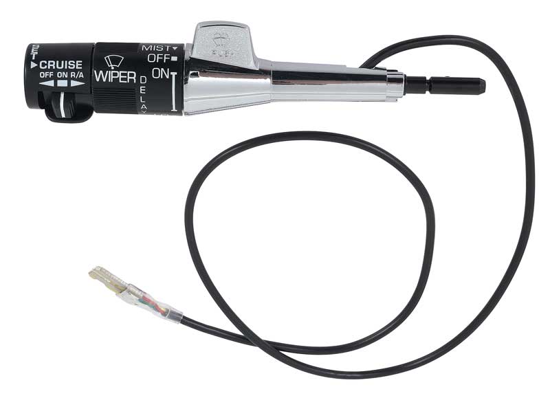 Reproduction turn signal stalk lever and cruise control switch for models equipped with pulse wipers. Each combination switch features the correct chrome plated stalk, as original. Fits a wide variety of 1984-95 GM models including 1984-88 G-Body, and 1984-94 GM truck applications. Replaces GM #'s 25031456, 25111260, 25075752, 25111262, and aftermarket # SM190.