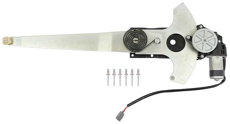Reproduction of the original power window regulator and motor assembly designed for use with 1987-93 Mustang t-top and convertible models. Manufactured to factory specifications for proper fitment and function. Lift motor is included. For use on RH passenger side.