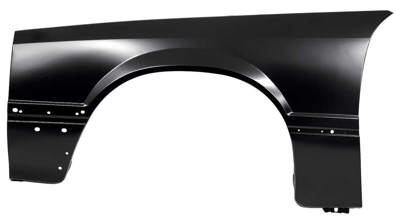 Reproduction of the original front fender designed for use with 1991-93 Mustangs. Each front fender is manufactured in stamped steel to original factory specifications featuring correct contours for an authentic appearance and fit. This fender is an excellent replacement for your rusted or damaged factory originals. Includes correctly drilled holes for mounting the fender molding. Comes with a black EDP coating for rust and corrosion prevention. For use on LH drives side.