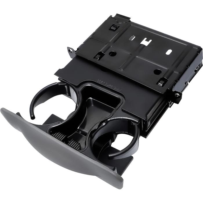 Reproduction tan dashboard cup holder for 1999-04 Ford Super Duty Trucks. This foldable dual drink holder mounts on the dashboard, in the center of the dash below the AC control, to the right of the auxiliary switch panel or dash pocket, and above the ashtray. Replaces OE number # YC3Z-2513560-CAD. Gray in color.