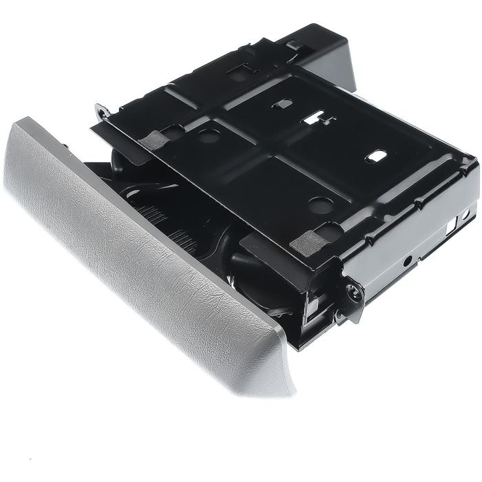 Reproduction dashboard cup holder for 2005-07 Ford Super Duty Trucks. This foldable dual drink holder mounts on the dashboard, in the center of the dash below the AC control, to the right of the auxiliary switch panel or dash pocket, and above the ashtray. Replaces OE number # 5C3Z-2504810-AAD. Gray in color.