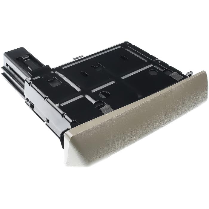 Reproduction dashboard cup holder for 2005-07 Ford Super Duty Trucks. This foldable dual drink holder mounts on the dashboard, in the center of the dash below the AC control, to the right of the auxiliary switch panel or dash pocket, and above the ashtray. Replaces OE number # 5C3Z-2504810-AAF. Tan in color.