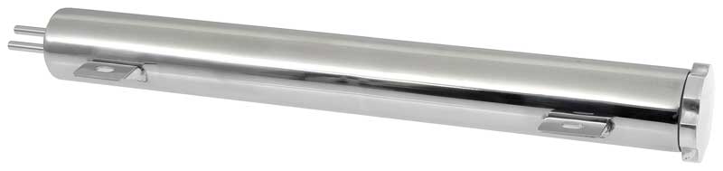 Radiator overflow tank designed for use with a variety of models. This beautiful OER® Authorized polished stainless steel radiator overflow tank will give your engine compartment a clean, custom looks. Includes a twist-on cap and mounting hardware. Measures 2" x 17". The mounting holes are 12-3/4" apart, center to center.