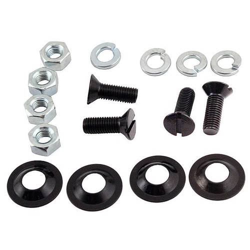 This kit mounts the door to the hinge on all 28-31 open cars. Need 1 kit per door. U.S.A.This kit contains:4x 1/4-28 x 3/4" FLAT HEAD MACHINE SCREWS4X 1/4-28 HEX NUTS4X 1/4" LOCK WASHER4X SPECIAL CUP WASHERS