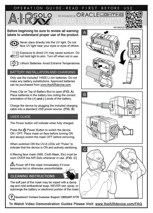 | Contents | A.I.R. Solo device, Rechargeable Batteries, USB Charging Cord |