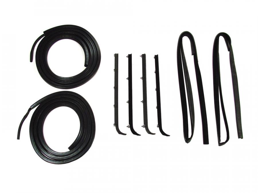 - 8-piece kit includes left and right glassruns, beltlines and door seals for full door sealing restoration.