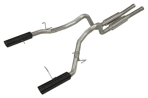 Pypes Cat Back Super System Exhaust System 11-14 Mustang GT Split Rear Dual Exit 2.5 in M80 Mufflers/Hardware/4 in Black Tips Incl Natural Finish 409 Stainless Steel Exhaust SFM76MB
