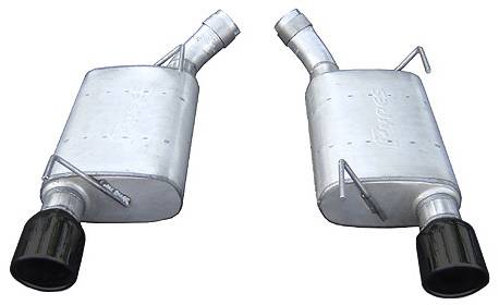 Pypes Violator Series Axle Back Muffler System 05-10 Mustang GT and Shelby Split Rear Dual Exit 2.5 in Intermediate Pipe Hardware/4 in Black Tips Incl Natural Finish 409 Stainless Steel Exhaust SFM60VB
