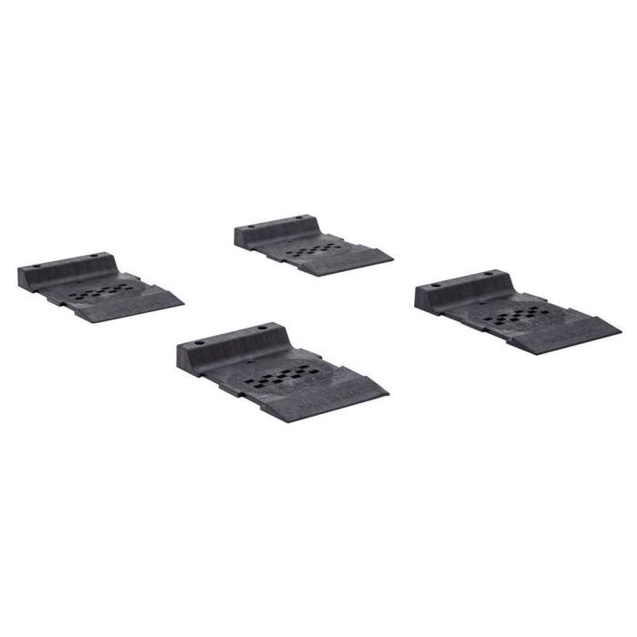 Use these four hard rubber Pro-Stop Parking Guides to easily park in your garage, driveway or trailer. They grip to the floor just like a tire, and come with pre-drilled holes if you choose to permanently mount them.