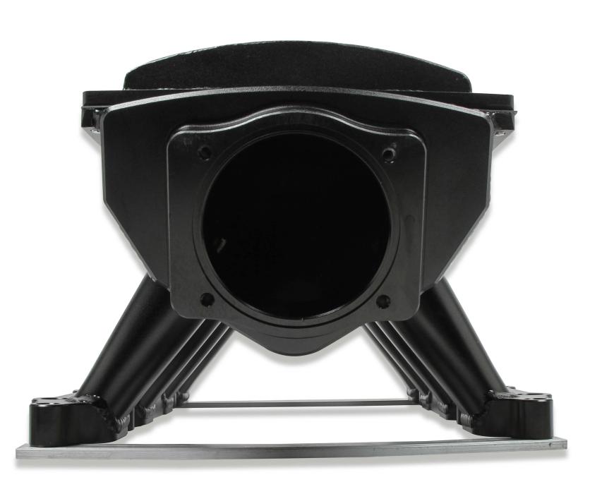 Intake runners with tapered top is designed to increase air velocity and more evenly distribute airflow to all 8 cylinders improving performance and throttle response