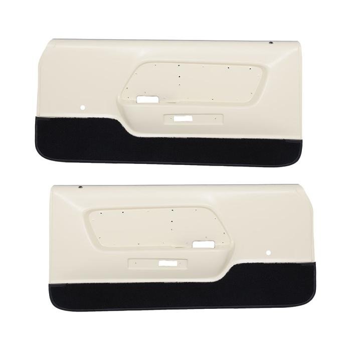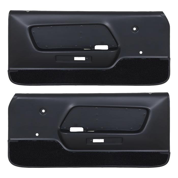 Our Deluxe door panels with black carpet are great way to customize your Mustang. Made of ABS molded plastic, our panels and have integrated arm rests, as well as pre-cut holes for door handles, lock grommets, and window cranks. These panels are available in black or white OEM Sierra Grain Vinyl.