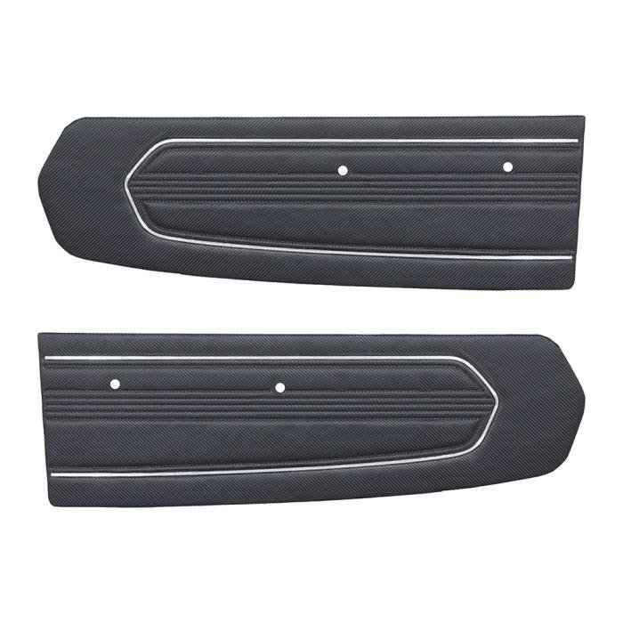 Our Standard door panels are heat seal embossed to match the original Mustang door panel exactly. Made of Masonite wood backing, these panels are durable and moisture resistant. We offer multiple color options in OEM Sierra Grain Vinyl that match your Mustang’s interior seamlessly.