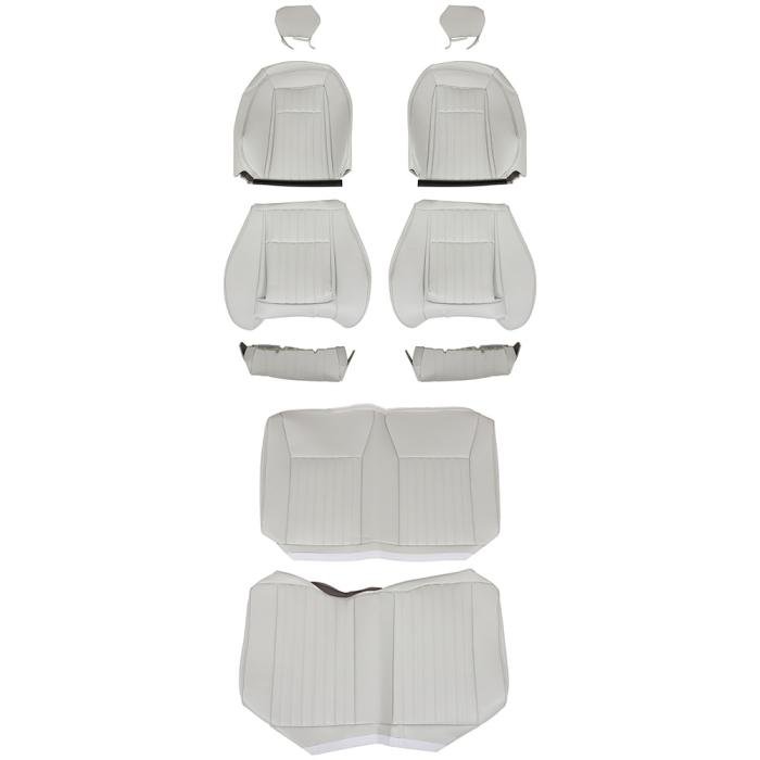 - Full sets include upholstery pieces for both front bucket seats and the rear bench seat.