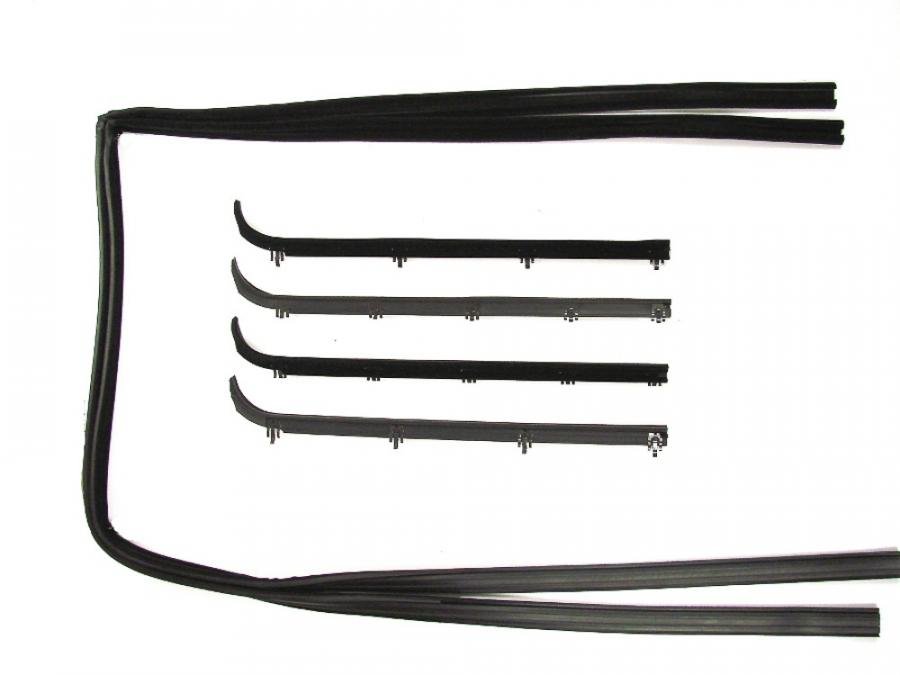 A complete 6-piece left- and right-hand beltline molding and glass run channel kit designed to restore proper window sealing, alignment, and appearance. This kit replaces worn or damaged beltline weatherstrips and glass runs to prevent water intrusion, reduce wind noise and vibration, and ensure smooth window operation. Designed for select 1987 fitments (verify fitment for your year/model using part number WFK 2111 87), the components are precision-formed to provide durable, long-lasting sealing and a factory-like fit. Ideal for restoration or routine maintenance, this kit improves reliability and helps protect interiors from moisture and debris while simplifying installation with a complete set of matched pieces.