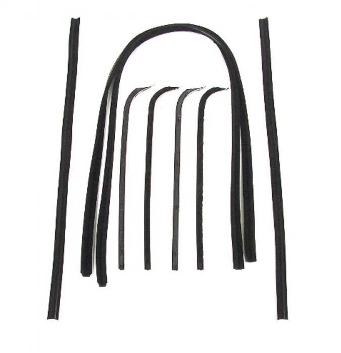 Complete 8-piece left and right beltline molding and glass run channel kit with chrome bead, engineered to secure and guide door glass while restoring the exterior trim line. This kit replaces worn or damaged beltline moldings and inner glass runs to stop wind noise, reduce water intrusion, and ensure smooth window operation. Finished with a chrome bead for authentic appearance, the kit provides durable, corrosion-resistant performance and is ideal for restoration or maintenance of classic vehicles.