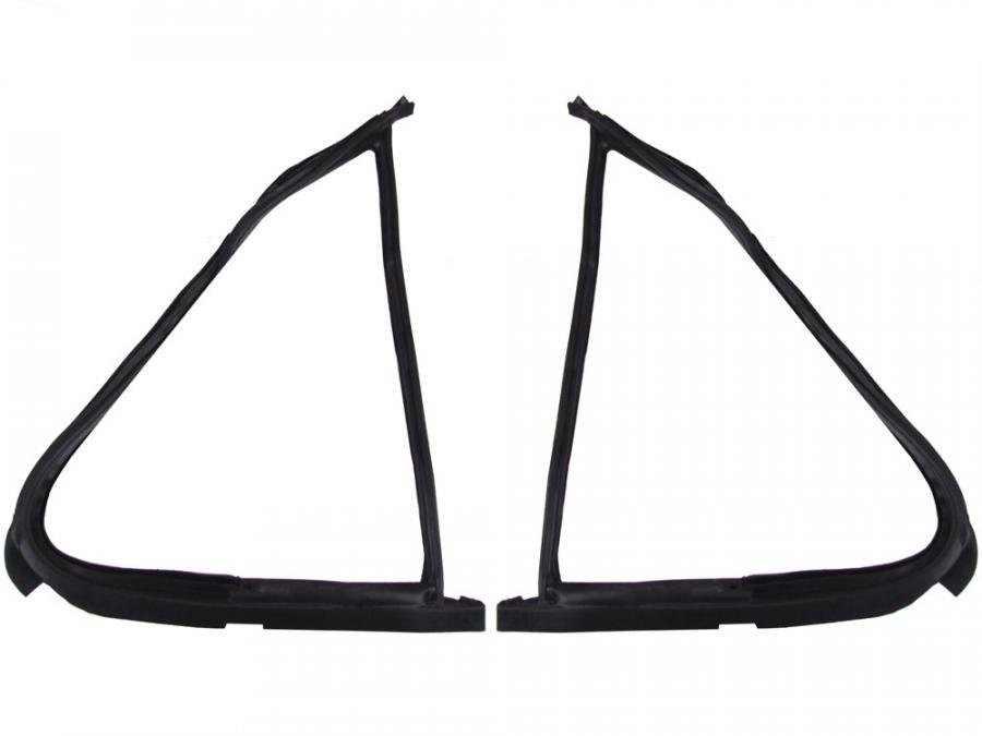 A 2-piece left and right vent glass weatherstrip seal kit designed to secure vent (quarter) glass, block water intrusion, and reduce wind noise. Built to restore a tight, factory-like seal on classic Volkswagen vent windows — verify part number VWK 2110 87 for exact fit. Made from durable, weather-resistant rubber compound to resist cracking and shrinkage, this kit helps maintain cabin comfort and protect interior trim and hardware from moisture damage.