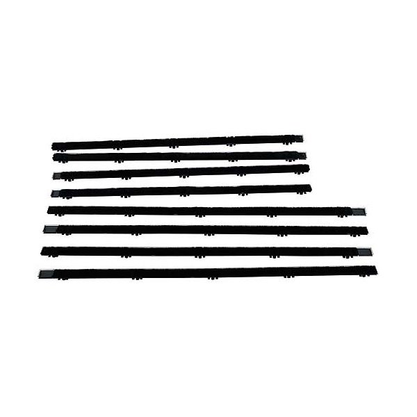 This is the weatherstripping that fits in the top edge of your door. All windowfelt kits include outer door piece as well as the inner pieces that attach to the top of your door panel. Manufactured to fit and appear like the original. Sometimes called window Fuzzies. Kits that specify Without Chrome are referring to the wide band of chrome or aluminum offered on some vehicles. Each kit designated without chrome will still have the narrow band of stainless trim on the windowfelt.