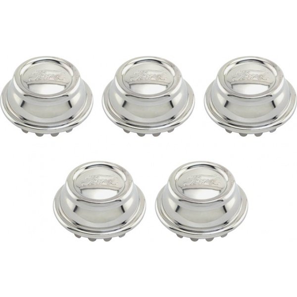 Model A Ford Hub Cap Set - 5 Pieces - Nickel Plated - Ford Script - Fits 2-5/8 Rim Opening - Show Car Top Quality: