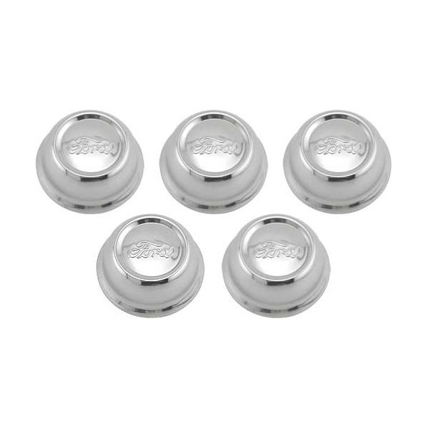 Model A Ford Hub Cap Set - 5 Pieces - Stainless Steel - Ford Script - Fits 2-5/8 Rim Opening - Reproduction